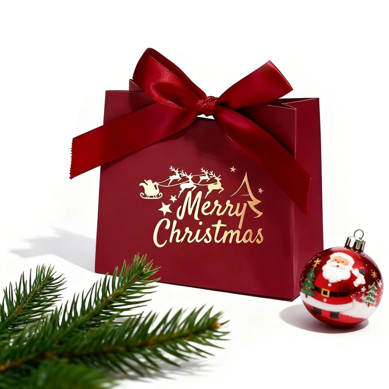 Un petit sac spécial Noël à fermer avec son ruban en rosette, ce qui rajoutera un effet de charme supplémentaire.