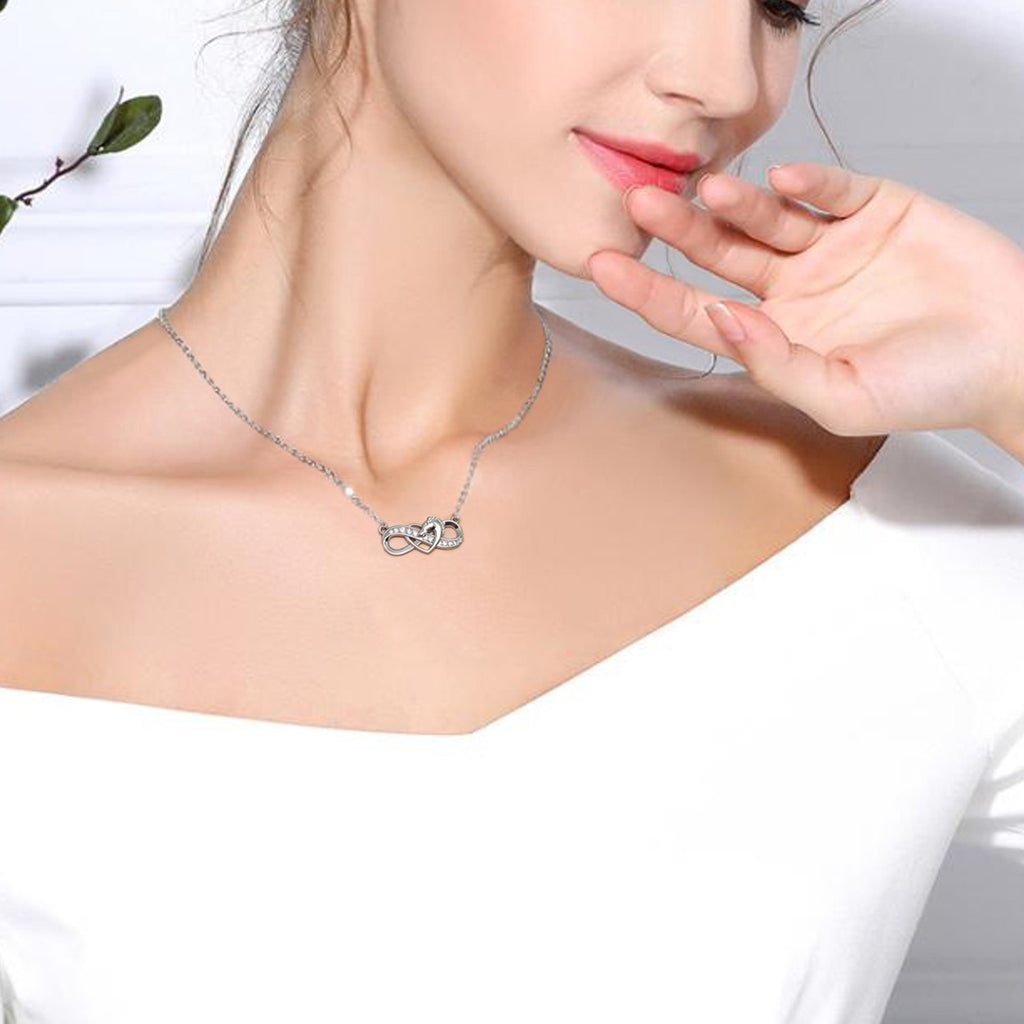 Collier pendentif - Cheval infini et coeur - argent massif et zircon
